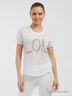 Отличная футболка с короткими рукавами и фигурным вырезом горловины. Модель оформлена контрастным рисунком. Прекрасный вариант на каждый день.