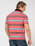 Яркое поло с отложным воротом стойкой, застежкой на три пуговицы и коротким рукавом выполнено из трикотажа средней плотности. Полочка декорирована вышивкой. Контрастные полоски. Стильный вариант на каждый день.