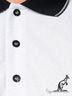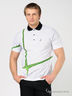 Оригинальное поло с отложным воротом стойкой, застежкой на три пуговицы и коротким рукавом выполнено из трикотажа средней плотности. Изделие украшено рисунками. Полочка декорирована вышивкой. Стильный вариант на каждый день.