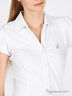 Отложной воротник на стойке. Планка-застежка на пуговицах декорирована золотым люрексом. Короткие рукава с украшены вырезом-капелькой.
