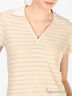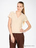 Футболка-поло из легкого перфорированного материала, нежного и приятного на ощупь. Отложной воротник. V-образный вырез. Короткие рукава. Универсальный бежевый цвет и уютный материал обеспечивают максимальный комфорт.