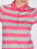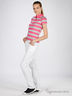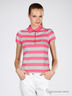 Трикотажная футболка-поло с короткими рукавами-фонариками из натурального 100% хлопка. Отложной воротник на стойке. На полочке планка-застежка на пуговицах. Футболка декорирована люрексом. Комфортная и стильная модель.