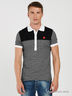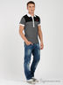 Детали: отложной ворот и манжеты короткого рукава в виде трикотажной резинки; застегивается на пуговицы; принт - полоска