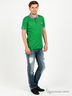 Детали: отложной ворот и манжеты в виде трикотажной резинки с контрастным принтом; застегивается на скрытую планку с пуговицами; на полочке нашивка