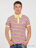 Детали: отложной ворот; застегивается на пуговицы; короткий рукав с манжетой в виде трикотажной резинки; принт - полоска; на полочке вышивка; на спине аппликация
