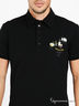Стильное поло с отложным воротом, застежкой на пять пуговиц и коротким рукавом. Изделие выполнено из эластичного трикотажа средней плотности. Полочка украшена принтами. Вещь займет достойное место в Вашем гардеробе.