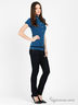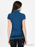 Оригинальное поло с коротким рукавом на резинке, отложным воротом и застежкой на пуговицы. Изделие выполнено из эластичного трикотажа средней плотности. Нагрудный кармашек. Изделие украшено аппликацией. Будьте стильной и женственной.