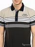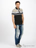 Трикотажная футболка-поло. Отложной воротник в рубчик. На полочке планка-застежка на пуговицах. Короткие рукава с манжетами.
