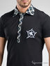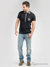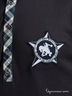 Мужская рубашка-поло с коротким рукавом. Отложной воротник и планка выполнены из клетчатой ткани. Кокетка на спинке изделия. На груди нашивка с логотипом.