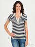 Детали: отложной ворот; застегивается на пуговицы; короткий рукав на резинке; оригинальный принт - полоска