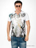 Рубашка-поло, классического кроя из трикотажа-пике. Короткий рукав с манжетой в виде резинки. Отложной воротник. Спереди застежка на пуговицах. По бокам небольшие разрезы. Спереди, с внутренней стороны, выполнен маленький карман. Футболка декорирована необычным, цветным принтом и металлическими клепками.