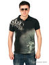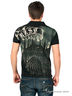 Рубашка-поло, классического кроя из трикотажа-пике. Короткий рукав с манжетой в виде резинки. Отложной воротник. Спереди застежка на пуговицах. По бокам небольшие разрезы. Спереди, с внутренней стороны, выполнен маленький карман. Футболка декорирована необычным, цветным принтом и металлическими клепками.