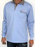Однотонная футболка-поло с длинными рукавами из джерси, края в рубчик + планка со скрытыми пуговицами + отстрочка на планке + вышивка "флаг" на планке внизу, трехцветный принт на груди, кокетка сзади + низ воротника в полоску, кант на основании воротника темно-синего цвета, боковые разрезы.