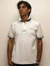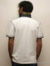 Однотонная футболка-поло из пике с короткими рукавами. Отстрочка под планкой, воротником и низом воротника серого цвета + двухцветный плетеный кант и тонкий серый кант. Контрастная отстрочка спереди и сзади, боковые разрезы, принт под воротником.