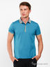 Стильная футболка-поло прямого силуэта. Отложной воротник-стойка. Застежка на пуговицы. Короткие рукава с трикотажными манжетами.