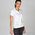 Белоснежная футболка-поло с графическим рисунком серо-салатового цвета. Натуральный материал и белый цвет - это отличный выбор!