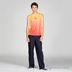 Футболка без рукавов из тонкого трикотажного материала с перфорированными вставками. По низу яркий принт, на плечах отделка кантом.