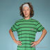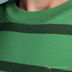 Мягкая трикотажная мужская футболка прямого кроя расцветки в полоску. На полочке лейбл. Вырез горловины круглый, рукав короткий.