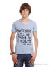 Футболка с короткими рукавами и V-образным вырезом. Принт спереди. Необработанные края.