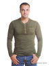 Футболка из мягкого меланжевого трикотажа со стильным «вареным» эффектом. Y-образный вырез с планкой застежки на пуговицы. Нагрудный карман. Нашивка внизу. Длинные рукава.
