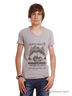 Футболка с короткими рукавами и V-образным вырезом. Принт спереди. Необработанные края.
