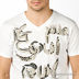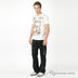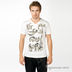 Трикотажная мужская футболка. V-образный вырез горловины. Спереди украшена набивным рисунком и металлическими элементами.
