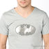 Трикотажная футболка. v-образный вырез. Спереди серебристая нашивка, украшенная стразами.