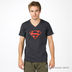 Трикотажная мужская футболка. V-образный вырез горловины. Спереди золотистая нашивка, украшенная стразами.