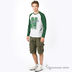Трикотажная футболка с длинными рукавами реглан. Спереди декорирована аппликацией.