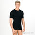 Стильная футболка из эластичного трикотажа в полоску. Футболка имеет короткие рукава и круглый вырез горловины.