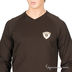 Стильная футболка из мягкого трикотажа. Футболка имеет длинные рукава и V-образный вырез горловины. Манжеты рукавов и пояс футболки выполнены из трикотажной резинки. На груди фирменный знак марки.