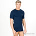 Стильная футболка из эластичного трикотажа. Футболка имеет короткие рукава и двойной круглый вырез горловины. Спереди фирменный знак марки.