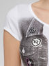 Модная женская футболка Rocawear приталенного кроя с короткими рукавами изготовлена из мягкого хлопка. Футболка декорирована контрастным принтом и стразами. Такая модель выгодно подчеркнет яркость и оригинальность Вашего образа.