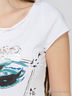 Легкая трикотажная футболка с круглым спущенным на плечи вырезом. Украшена оригинальным золотым и серебряным принтом в виде портрета. В этой футболке вы будите неотразимы.