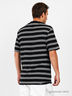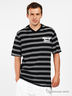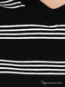 Детали: V-образный вырез горловины, короткие рукава, полочка декорирована брендовой нашивкой, стильный принт полоска-тренд сезона.