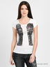 Модная футболка из слегка эластичного материала. Округлый вырез горловины. Короткие рукава. Спереди оригинальный принт.