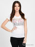 Стильная футболка из слегка эластичного материала. Округлый вырез горловины. Короткие рукава. Спереди оригинальный принт из страз.
