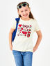 Футболка для девочек Крой прямой, вырез горловины округлый, неглубокий, рукава короткие. Цвет изделия-молочный, с принтом в области груди. Тип ткани-Кулирная гладь (супрем).