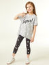 Футболка детская. Крой прямой, вырез горловины округлый неглубокий. Модель декорирована принтом.