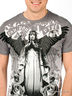 Футболка классического кроя из тонкого трикотажа с оригинальным принтом. Ворот окантован трикотажной резинкой.
