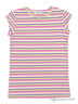 Удобная футболка из эластичного трикотажа в полоску. Круглая горловина обработана трикотажной бейкой. Удлиненная модель замечательно дополнит лосины или бриджи.