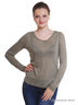 Футболка из мягкого трикотажа с длинными рукавами и круглым вырезом украшена маленькими золотистыми заклепками. Небольшая сборка на вырезе спереди. Длина размера М ок.67 см, разница в 2 см между размерами.