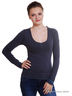 Базовая футболка из мягкого трикотажа с V-образным вырезом и длинными рукавами. Отстрочка по низу и рукавам, красивый принт на одном рукаве внизу. Прямой крой. Длина размера М ок.59 см, разница в 2 см между размерами.