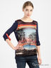 Футболка с длинными рукавами и круглым вырезом. Перед из атласа с красивым фотопринтом в виде пейзажа. Рукава и спинка из однотонного джерси стретч. Закругленный низ.