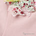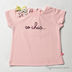 Приталенная модель с застежкой на две кнопки на спинке. Декоративные тканевые бантики и надпись из пришитых паеток на полочке.