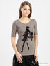 Футболка с короткими рукавами и круглым вырезом. Красивый принт с аппликациями из бусин и тюля спереди.