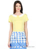 Детали: круглый вырез; короткий цельнокроеный рукав; окантовка выреза контрастного цвета; на спине вертикальный шов