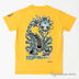 Детали: круглый вырез горловины с трикотажной бейкой, короткие рукава, стильный и оригинальный принт на полочке и на спинке