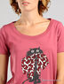 Очаровательная трикотажная футболка приглушенного красного цвета из приятного на ощупь материала. Широкая круглая горловина. Короткие рукава. Забавные бархатистый принт на полочке.