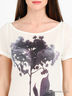 Повседневная футболка из тонкого, мягкого вискозного трикотажа с добавлением шерсти. Округлый вырез горловины, короткий рукав, полочка украшена принтом. Отличный вариант для создания стильного образа.
